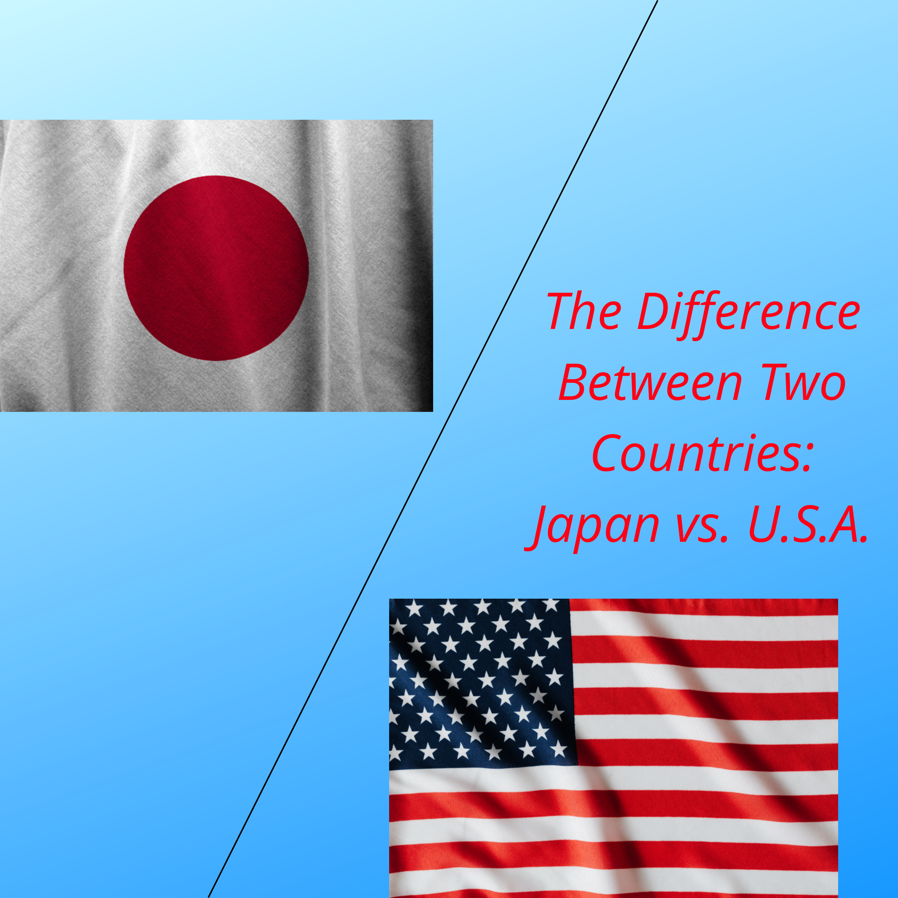 Hello and welcome to my podcast, The Difference Between the Two Countries: Japan vs United States of America. I'm Leah, and I'm your host. In this podcast, we'll be talking about the difference of Japan and the United States of America. Today, we'll be talking about the difference of the school.
